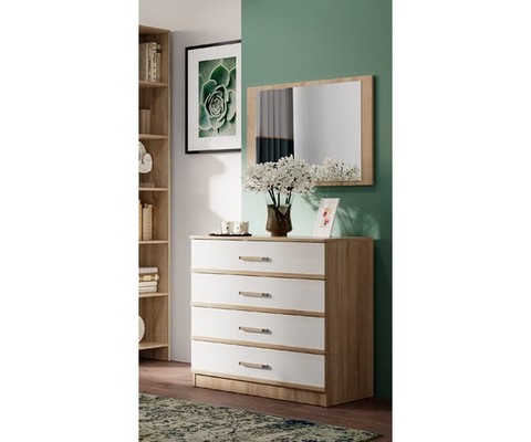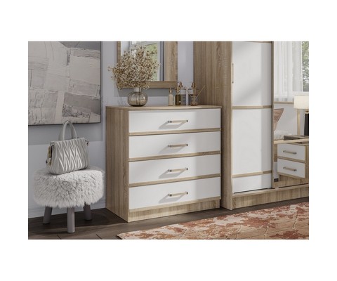 Комод оснащен 4 выдвижными ящиками на роликовых направляющих.