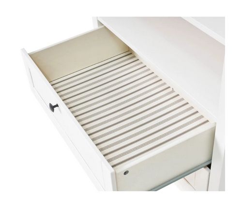 Стол оснащен широкой полкой и двумя выдвижными ящиками на роликовых направляющих для хранения всех необходимых принадлежностей.