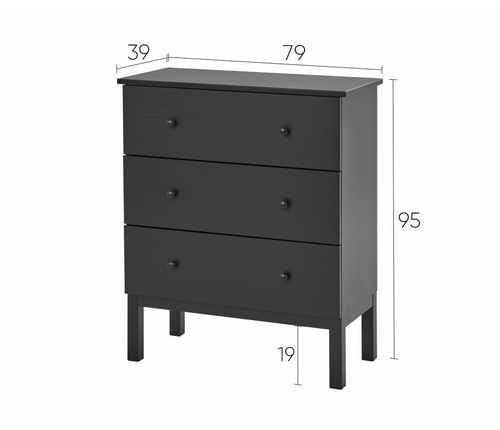 Комод Тирана 3 ящика 79х95х39 (черный)