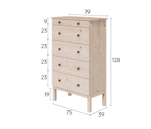 Комод Тирана 5 ящиков 79х129х39 (сосна)