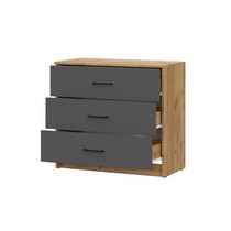 Комод состоит из трех выдвижных ящиков с роликовыми направляющими, которые позволяют им открываться легко и бесшумно.