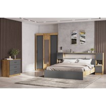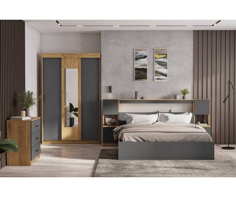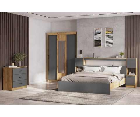 Корпус и фасад выполнен из ЛДСП в сочетании цветов дуб золотой и графит серый.