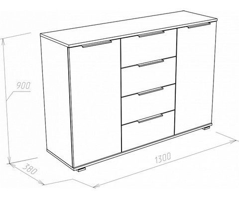 Компоненты, входящие в комплект: 2 дверцы, 2 полки, 4 ящика.