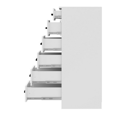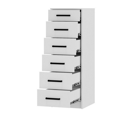 Высокий комод Фьюжн КМ-04 с 6-тью ящиками на направляющих плавного выдвижения поможет организовать хранение вещей в сложенном виде, аксессуаров, книг.