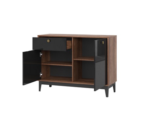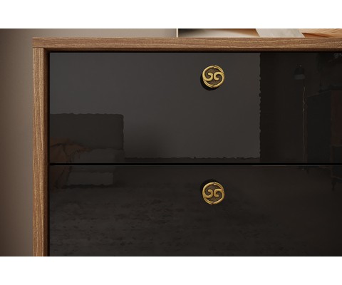 Комод КМ-3 BRASS (каштан арвадона, черный глянец)