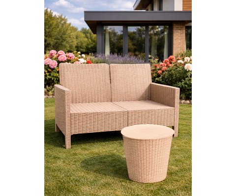 Комплект 2 садовых кресла, двухместный диван и столик под ротанг СадКо (бежевый)