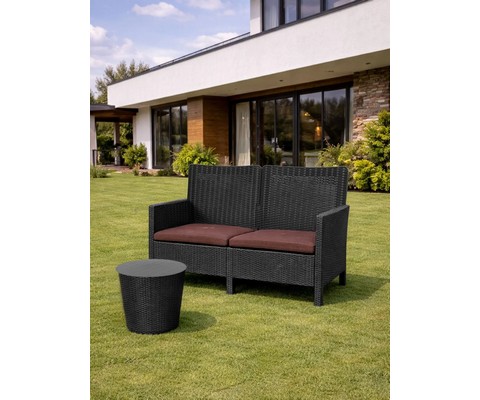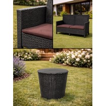 Комплект 2 садовых кресла, двухместный диван и столик под ротанг СадКо (темно-серый с коричневыми подушками)