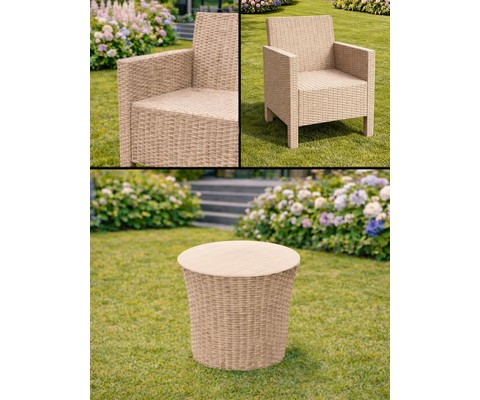 Комплект 2 садовых кресла и столик под ротанг СадКо (бежевый)