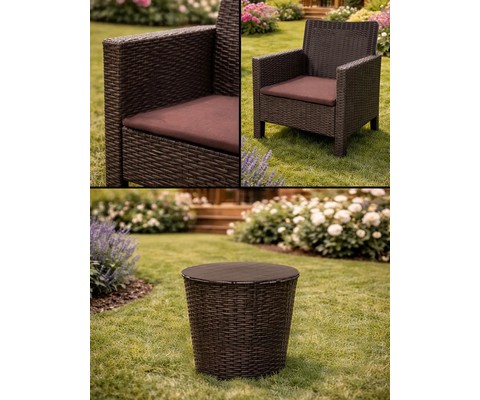 Комплект 2 садовых кресла и столик под ротанг СадКо подарит вам комфортный отдых на свежем воздухе, объединяя стильный дизайн, практичность и надежность.