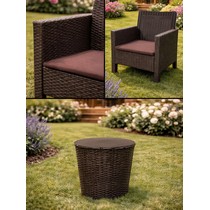 Комплект 2 садовых кресла и столик под ротанг СадКо (темно-коричневый с коричневой подушкой).
