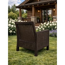 Стильный и практичный комплект из двух кресел и кофейного столика с эффектным плетением под ротанг, созданный для комфортного отдыха в саду, на террасе или у бассейна.