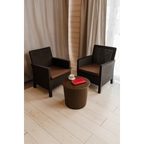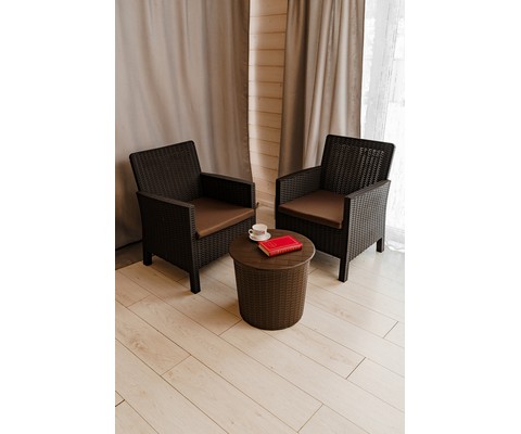 Комплект 2 садовых кресла и столик под ротанг СадКо (темно-коричневый с коричневой подушкой)