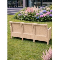 Стильный и практичный комплект из двух кресел, трехместного дивана и кофейного столика с эффектным плетением под ротанг, созданный для комфортного отдыха в саду, на террасе или у бассейна.