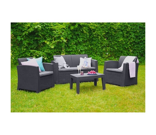 Комплект Arizona двухместный диван, 2 кресла и столик (антрацит, подушки серые)