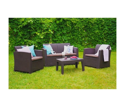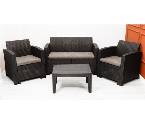 Комплект Arizona двухместный диван, 2 кресла и столик (венге, подушки бежевые)