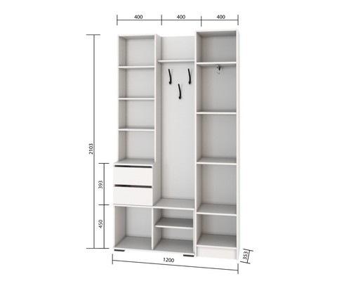 Прихожая Бостон В-2 (белый) - MALM-ORI-ЦБ-00017966 - 1 шт.