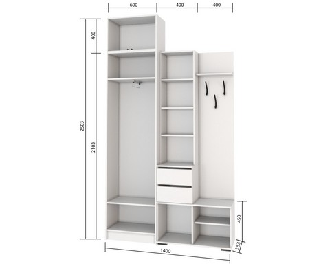 Прихожая Бостон В-2 (белый) - MALM-ORI-ЦБ-00017966 - 1 шт.