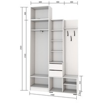Комплект состоит из прихожей со встроенным зеркалом, шкафа двухстворчатого и антресоли.