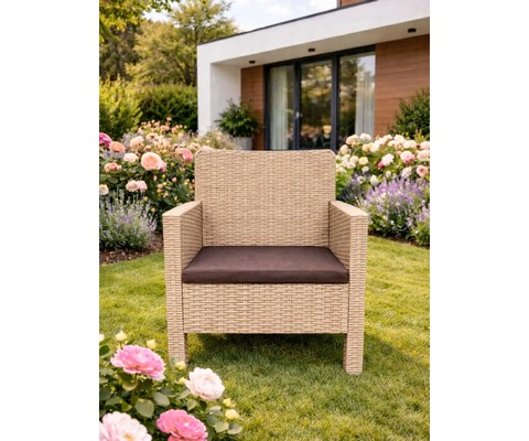 Комплект кресел садовых под ротанг 2 шт СадКо (бежевый с коричневой подушкой).