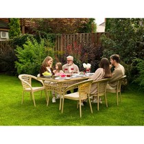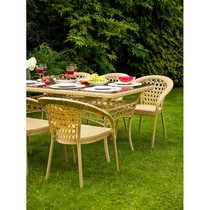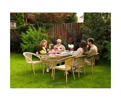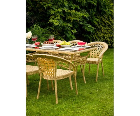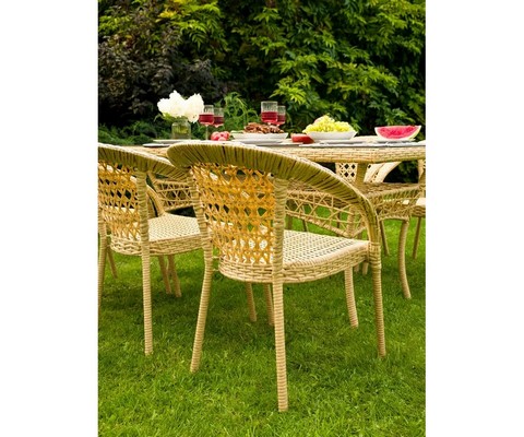 Благородный оттенок искусственного ротанга придает комплекту природную теплоту и визуальную легкость.
