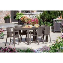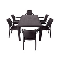 Дополнительно: комплект от российского производителя Gardeck включает 6 стульев с подлокотниками и 1 обеденный стол, идеально подойдёт для оформления садового участка, позволяет с комфортом разместиться Вам и Вашим гостям на террасе или балконе в количестве 6 человек.