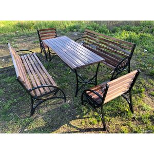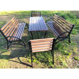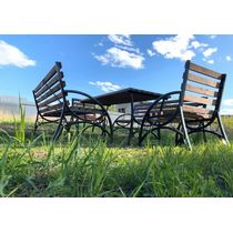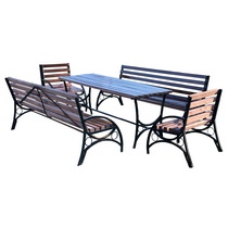 Скамейка и кресло: каркас - сталь с порошковым покрытием RAL 9005, сиденье - сосна, ель.