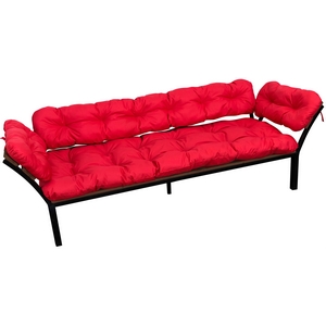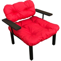 Варианты цвета: каркас - чёрный, дерево - натуральный, подушки - красные.