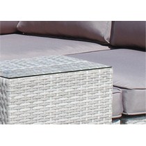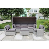 Комплект состоит из 5 модулей: трёхместный диван с тентом, 2 кресла, пуф и приставной столик.