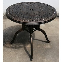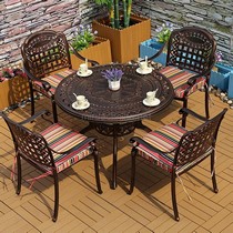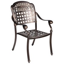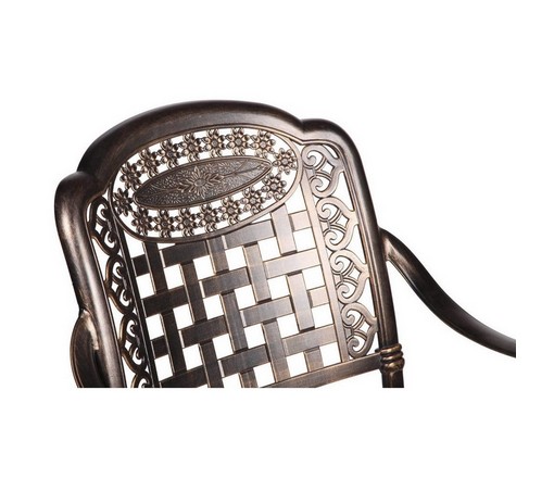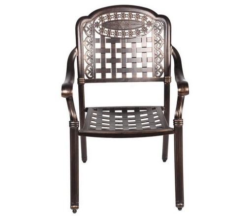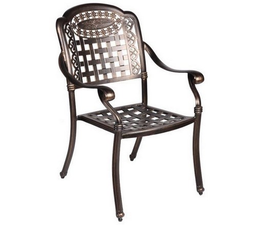 Комплект мебели из литого алюминия состоит из стола и четырех кресел с подлокотниками.