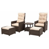 Комплект состоит из столика, двух кресел и двух пуфиков и рассчитан на 2 персоны.