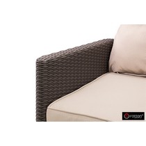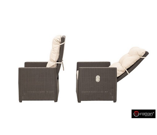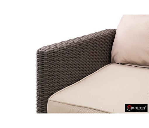Комплект мебели изготовлен из высококачественного штампованного пластика с имитацией искусственного ротанга.