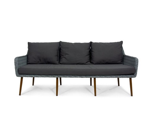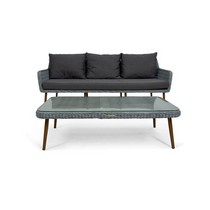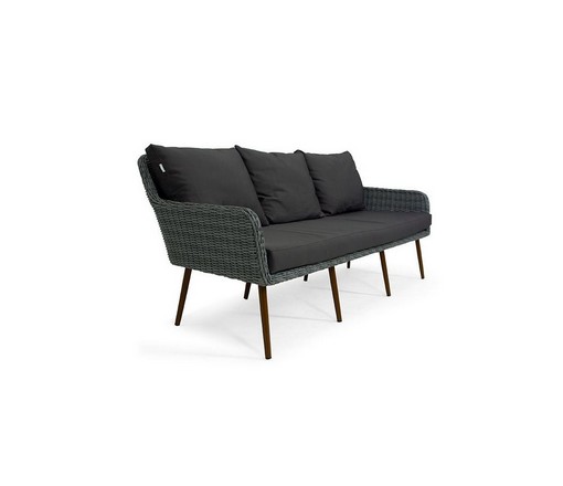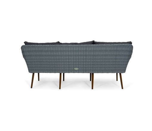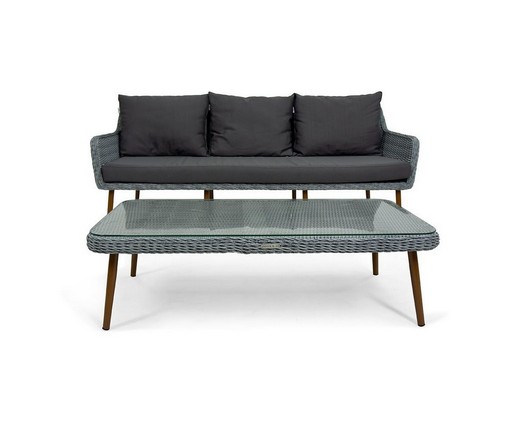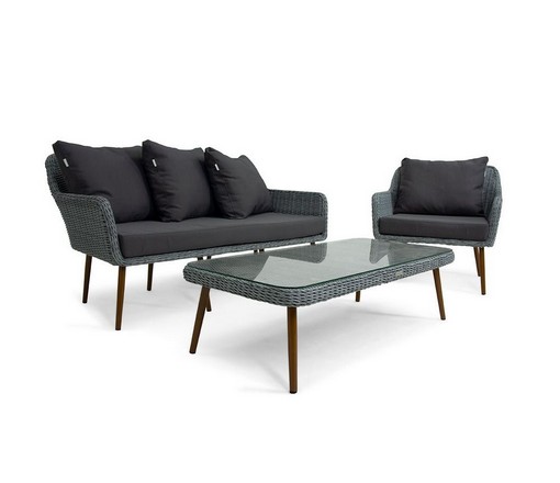 Материалы изделия: сталь (каркас, ножки), Polyrattan (лоза), полиэстер (чехол подушек), закаленное стекло (столешница).