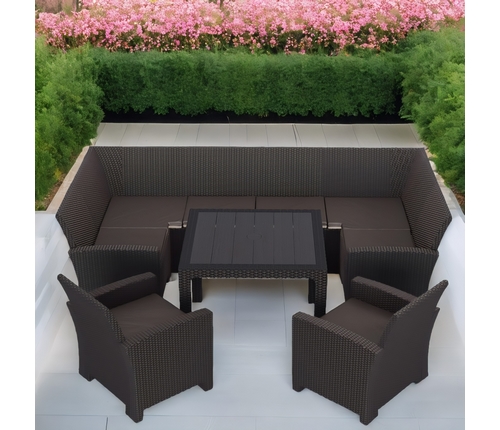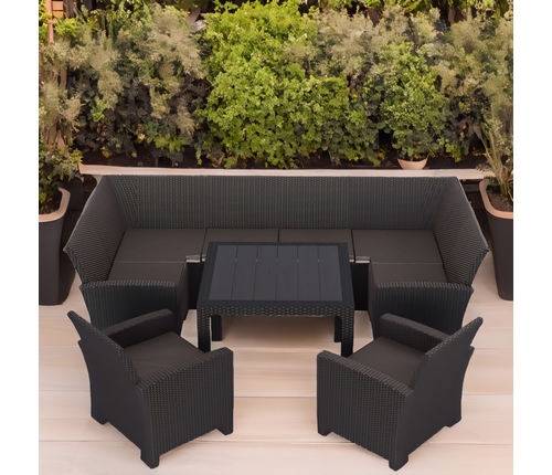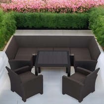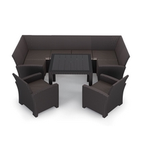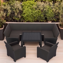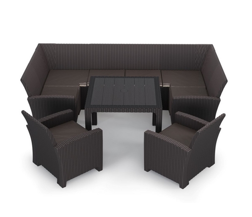 Дизайн пластика под ротанг придает мебели естественный вид и гармонично сочетается с любым ландшафтом.