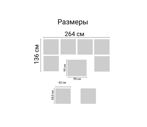 п-образный диван: длина - 136, ширина - 264, высота - 75,