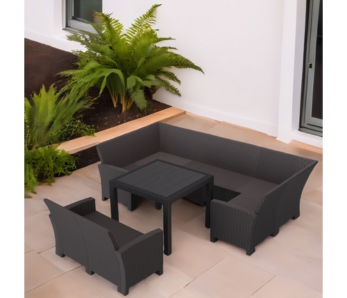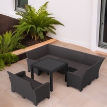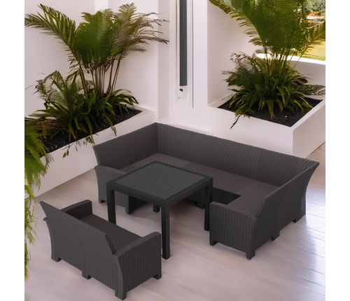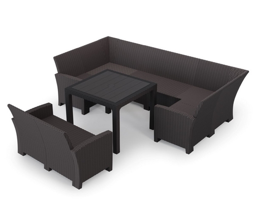 Дизайн пластика под ротанг придает мебели естественный вид и гармонично сочетается с любым ландшафтом.