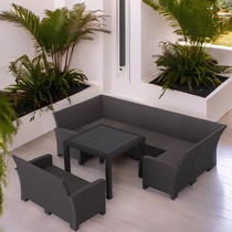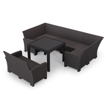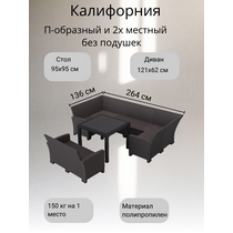 Комплект мебели под ротанг Калифорния (California) с П-образным диваном 136х264х136 см 6 мест, 2х-местным диваном 121х62 см, без подушек, со столом 95х95 см.