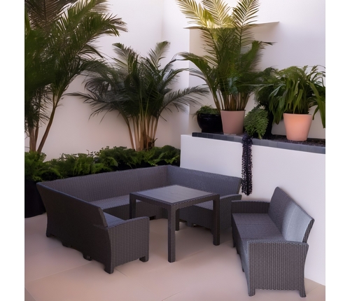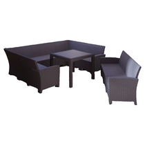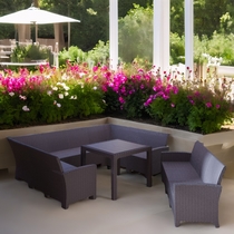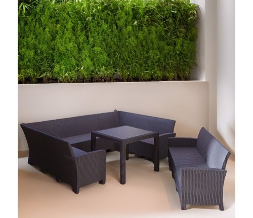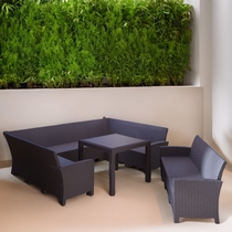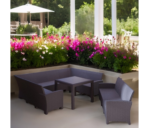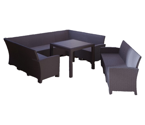 Дизайн пластика под ротанг придает мебели естественный вид и гармонично сочетается с любым ландшафтом.
