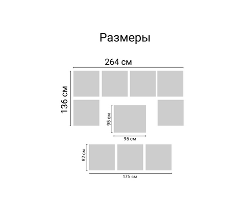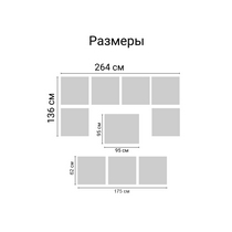 п-образный диван: длина - 136, ширина - 264, высота - 75,