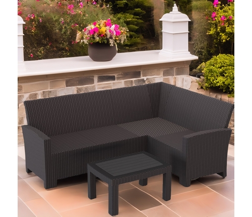 Дизайн пластика под ротанг придает мебели естественный вид и гармонично сочетается с любым ландшафтом.