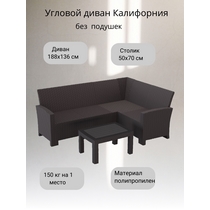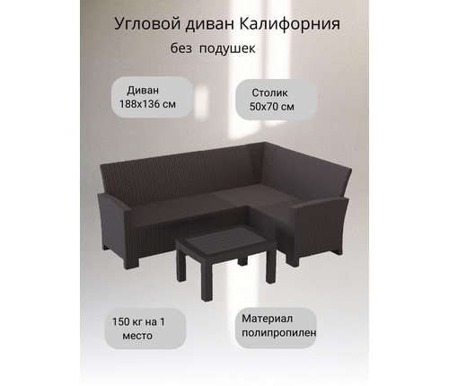 Комплект мебели под ротанг Калифорния (California) с угловым диваном 188х136 см 4 места без подушек, с кофейным столиком.