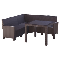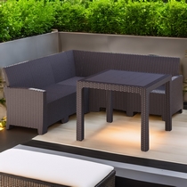 Дизайн пластика под ротанг придает мебели естественный вид и гармонично сочетается с любым ландшафтом.