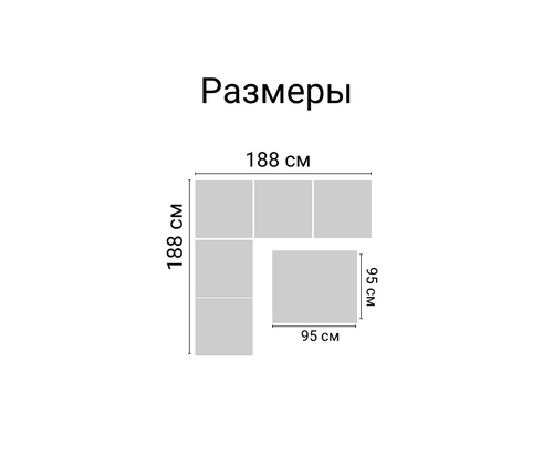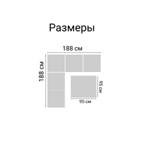 угловой диван: длина - 188, ширина - 188, высота - 75,