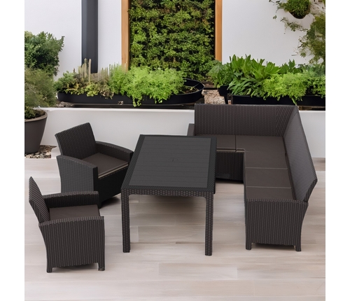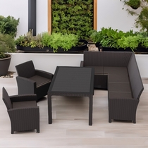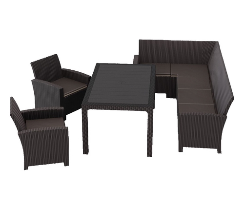 Дизайн пластика под ротанг придает мебели естественный вид и гармонично сочетается с любым ландшафтом.