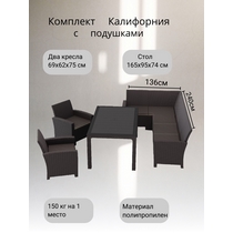 Комплект мебели под ротанг Калифорния (California) с угловым диваном 240х136 см, 2 креслами, с подушками на сиденье и столом 165х95 см