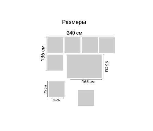 угловой диван: длина - 240, ширина - 136, высота - 74,