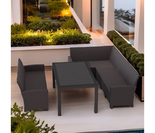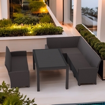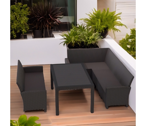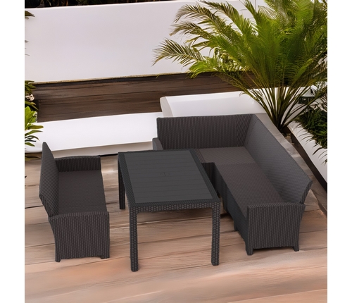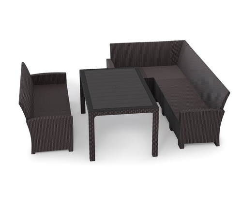Дизайн пластика под ротанг придает мебели естественный вид и гармонично сочетается с любым ландшафтом.