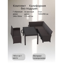 Комплект мебели под ротанг Калифорния (California) с угловым диваном 240х136 см, 3х-местным диваном 175х62 см, без подушек, со столом 165х95 см