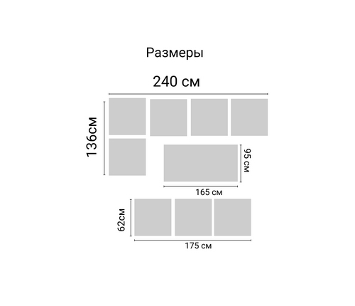 угловой диван: длина - 240, ширина - 136, высота - 74,