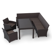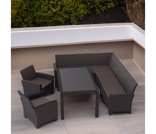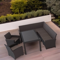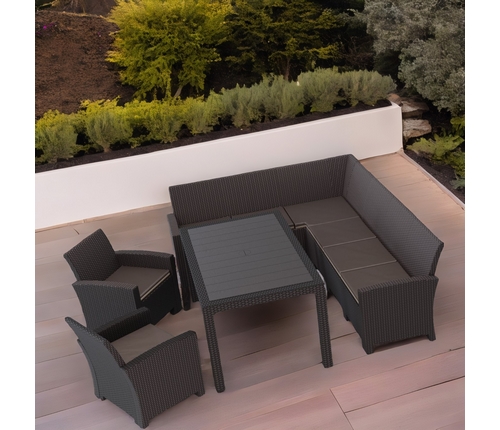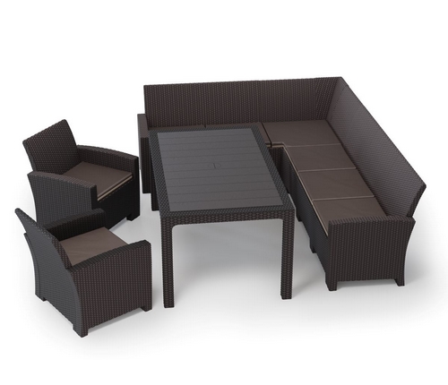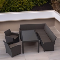 Дизайн пластика под ротанг придает мебели естественный вид и гармонично сочетается с любым ландшафтом.