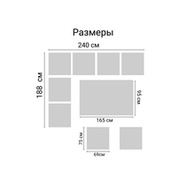 угловой диван: длина - 240, ширина - 188, высота - 74,